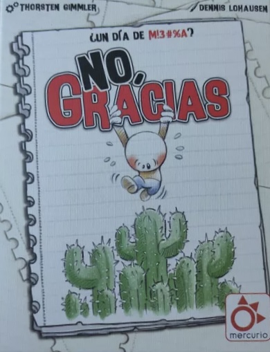 No, gracias es un juego del 2004, de 3 a 7 jugadores, con partidas de unos 20 minutos y publicado en castellano por la editorial Mercurio.