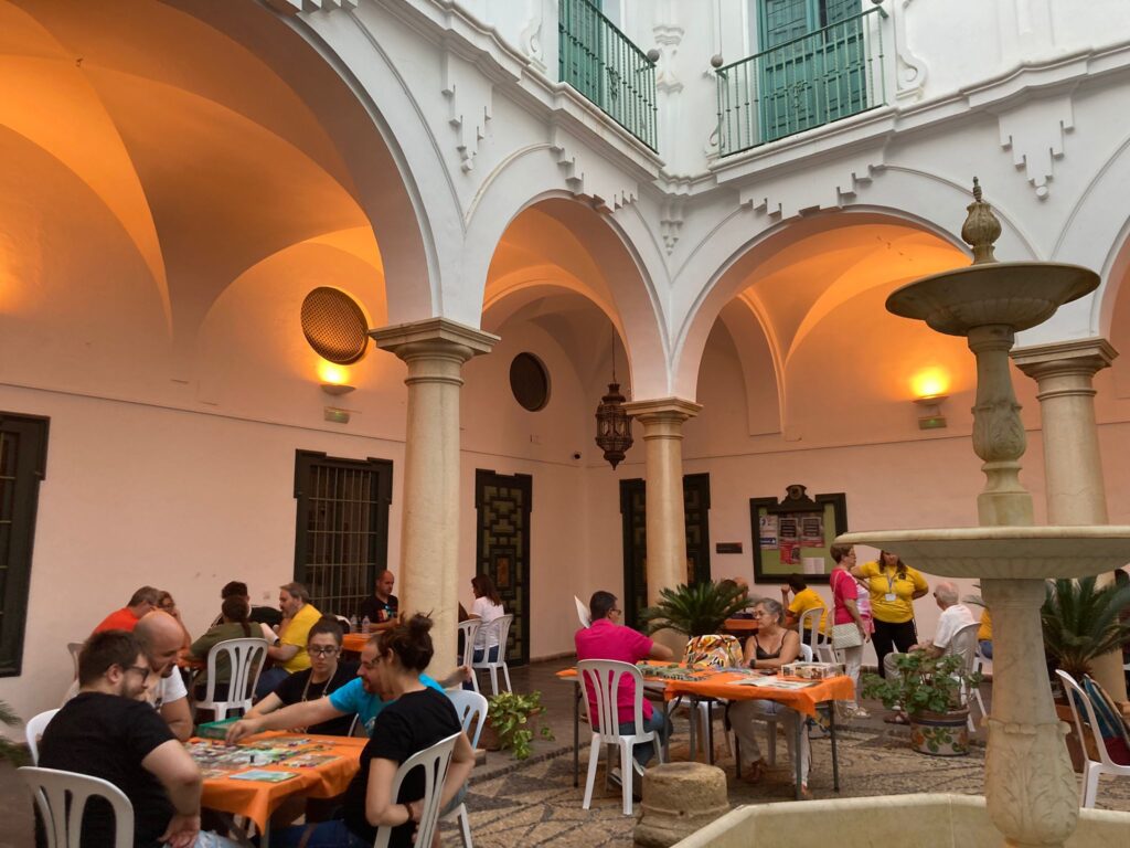 Por supuesto no puedo olvidarme de quienes han dejado de ser amigos para ya formar parte de la familia y son con quienes pasamos la mayor parte del tiempo durante el Festival en las comidas y cenas, haciendo turismo por la ciudad de Córdoba, conversaciones sin fin y partidas entre otros juegos a Turing Machine, Martes 13, Viajes Catastróficos, Identidad Secreta, Unánimo, Las tribus del viento y The White Castle (me quito el sombrero ante Isra y Shei que se han vuelto a sacar un señor juegazo muy sencillo de reglas pero con una profundidad muy grande debido a la importancia que tiene cada decisión que tomas, ya que solamente tienes nueve turnos en toda la partida). También dentro de este grupo hay quienes van por trabajo y aún así buscan tiempo para poder estar un rato juntos y compartir momentos breves pero inolvidables, gracias a todos ellos porque esto no sería lo mismo ni por asomo si no estuvieran presentes siempre aunque sea en la distancia y en persona en cuanto es posible. Gracias, de verdad, no hace falta que os nombre pues al leerlo sabréis perfectamente quienes sois.
