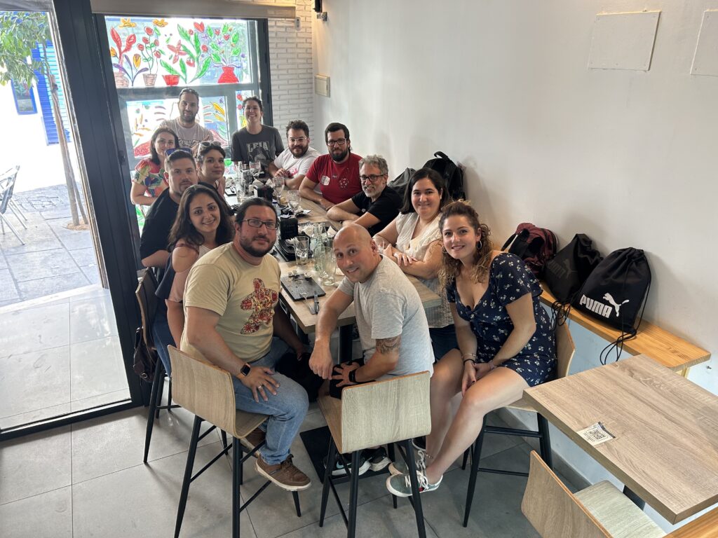 Nada más llegar ya habíamos quedado para comer, una mesa para 13 (y no fue la más grande en la que nos sentamos esos días) con reencuentros muy esperados, risas, diversión, conversaciones que no terminaban nunca y de las que querías empaparte y compartirlo todo… De ahí nos fuimos ya a las mesas a empezar a probar juegos e ir saludando y conversando con mucha gente, he de reconocer que si no hubiera estado junto a Owen en muchos momentos no hubiera sido capaz de atreverme a dirigirme a según quién porque sigo teniendo ese reparo a poder molestar o incomodar, así que por favor si en algún evento de este tipo me veis acercaros por si yo no llegara a hacerlo pues como estuve hablando con José son esos momentos, esas conversaciones sobre juegos y sobre la vida lo que hacen especiales estos eventos, diría que incluso más que las partidas.