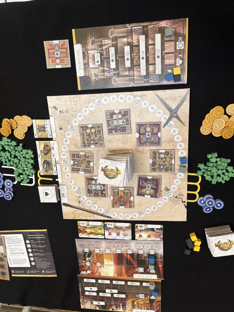 Y hablando de partidas; este año pude probar varios juegos, alguno de ellos me ha sorprendido mucho para bien y es casi seguro que se sumarán a la colección, algún otro no me gustó como para comprarlo aunque no me importaría volver a jugarlo, otro me ha generado dudas porque es exclusivo para dos jugadores y no tengo muy claro si vería suficiente mesa o se quedaría en el estante de los olvidados y solamente ha habido un juego que difícilmente volvería a jugar ya que me ha dado la sensación de ser un producto sin finalizar, como si no se hubiera testeado lo suficiente o con las personas adecuadas, un juego con buenas intenciones pero que no da más de sí y se queda en esas buenas intenciones sin aportar nada diferenciador o relevante. En total han sido ocho partidas jugadas, además de alguna otra que expliqué para ayudar, en cuatro días.