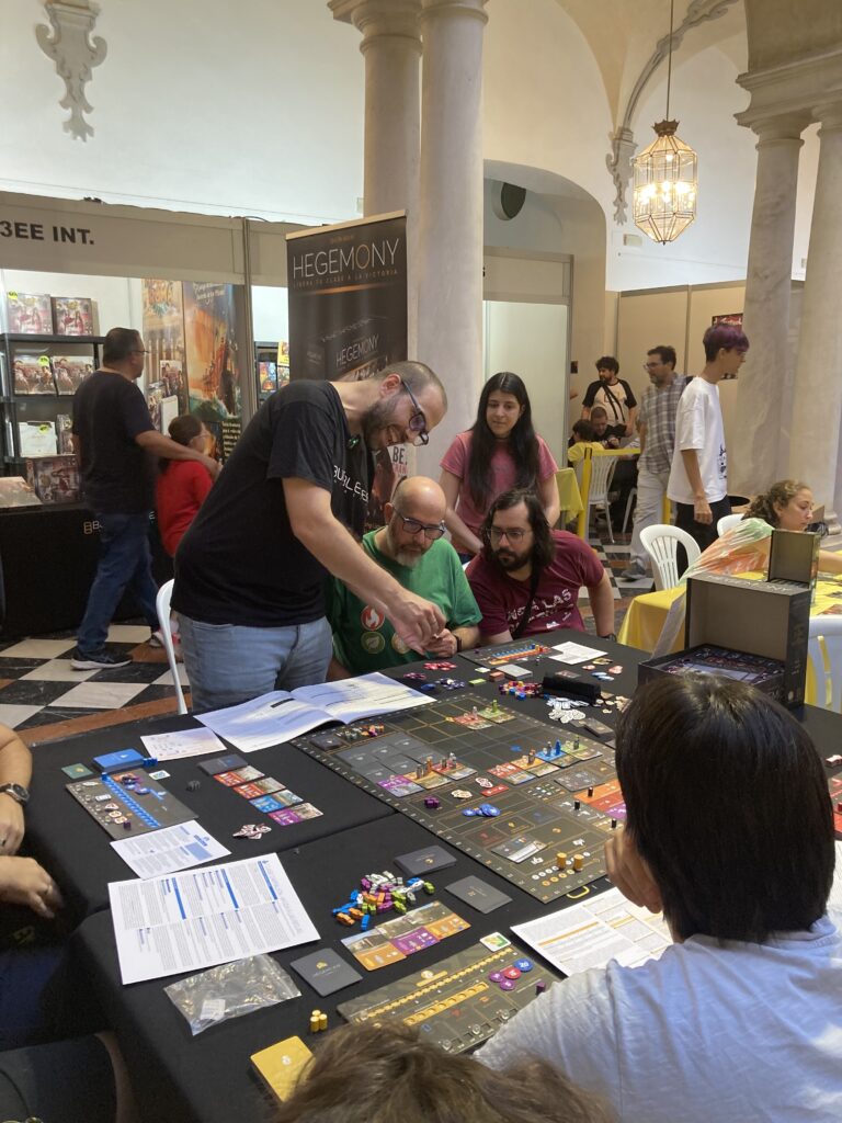 También pasé tiempo en mayor o menor medida con editoriales y se nota que aunque son empresas y es su trabajo, los juegos de mesa es su gran pasión y es algo que aprecias con pocas palabras que cruces con ellos, si estás unos minutos conversando no te queda ninguna duda al respecto. Además de la antes nombrada Tranjis Games, querría destacar especialmente a Devir que me permitieron asistir a su presentación de novedades para 2024 en donde nos mostraron sus próximos lanzamientos de juego propio (tenéis un reel que hicimos en instagram ese mismo día) y con quienes pasamos parte de la tarde del sábado en su ya clásico Devir Show donde conseguimos un Cometas que curiosamente no salió volando; pude tener unas buenas charlas con los editores de Delirium Games y los editores de Bumble3ee Interactive de la mano de Owen, quien el viernes por la tarde estuvo explicando Hegemony para estos últimos; en menor medida, porque el tiempo dio para lo que dio, también pude mantener unas breves conversaciones con personal de Mercurio, 2Tomatoes y Rocket Lemon Games; estuvieron muchas más presentes pero no llegué a tener un contacto con ellas más allá de saludar por los pasillos o al cruzarnos con lo que seguramente me olvide de alguna si intento nombrarlas a todas.